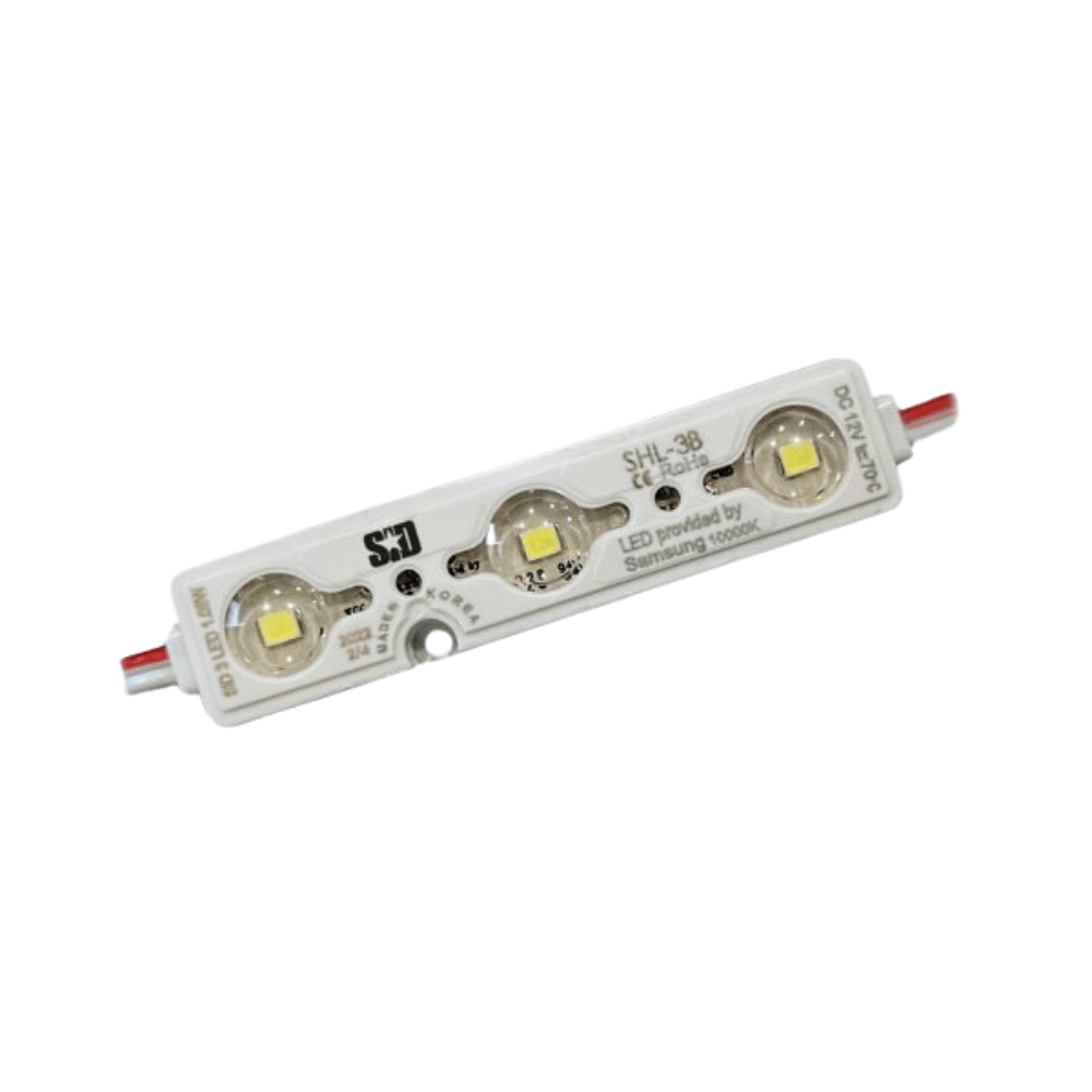 LED Hàn Quốc SID 3 bóng SS28 10K dòng sản phẩm led module quảng cáo chuyên hắt sáng cho biển bạt, hộp đèn chữ nổi với thiết kế lens bảo vệ cầu lồi không cho nước hay bụi bẩn tác động vào chip led nhưng không ảnh hưởng đến chất lượng ánh sáng mà giúp ánh sáng toả sáng một góc rộng 160 độ.