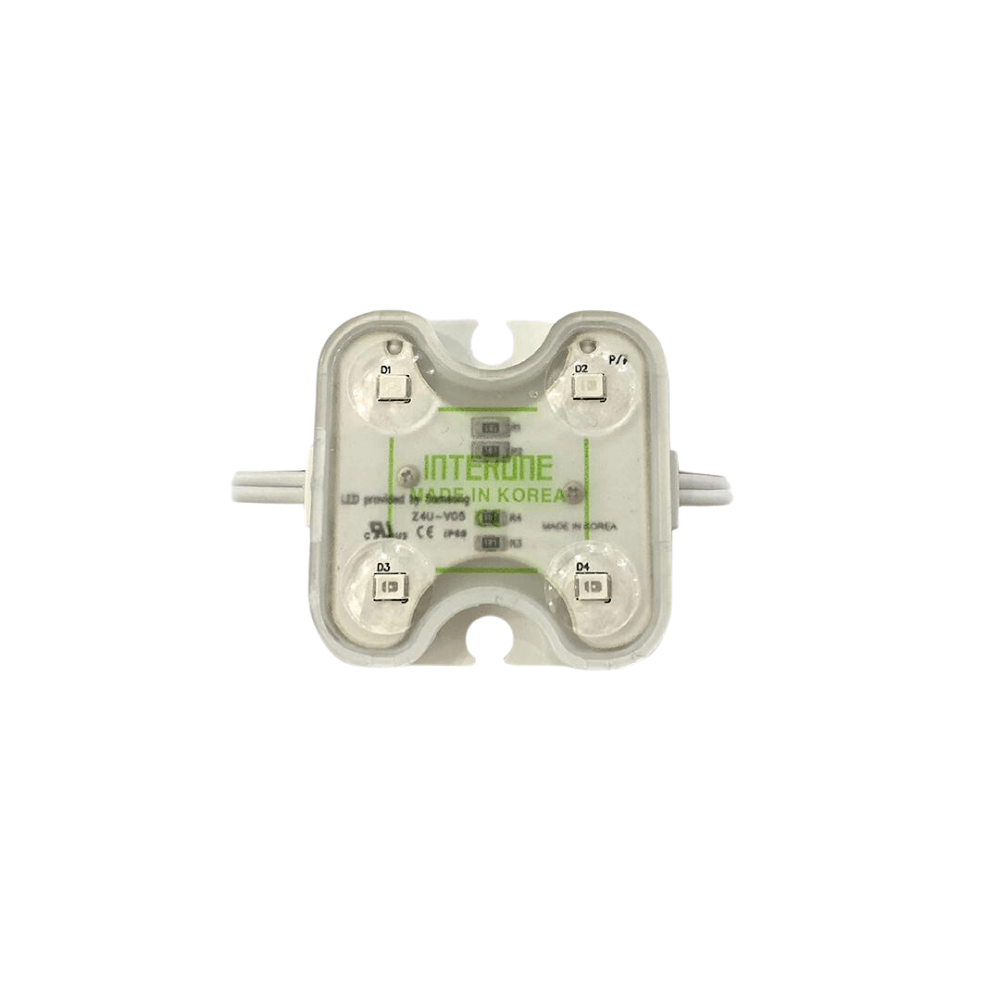 LED Interone 4 Bóng Xanh Lá Z4U-V05-a4-K28-G Thiết kế giống như các loại led module hàn quốc ánh sáng xanh lá, gồm thân led bằng nhựa chắc chắn và phần chip led được bao bọc bởi lens thấu kính trong suốt có tác dụng bảo vệ led chip chống bám bụi và bám nước đạt chuẩn IP68 và tăng cường góc chiếu sáng tới 140 độ.