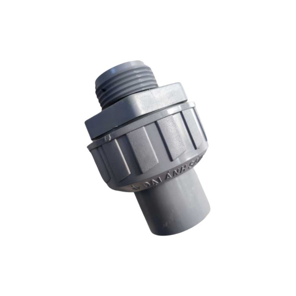 Nối ren ngoài rắc co có hai đầu, một đầu có ren ngoài để vặn vào đai nối, và một đầu trơn để kết nối với ống nhựa bằng cách sử dụng keo dán ống hoặc hàn nhiệt.