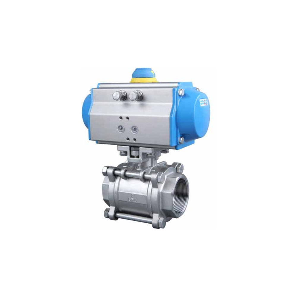 Van bi 3 mảnh điều khiển khí nén lắp ren Automa là thiết bị tự động hóa chuyên dùng trong các hệ thống van công nghiệp yêu cầu khả năng đóng mở nhanh, độ kín cao và dễ bảo trì. Sản phẩm có cấu tạo thân 3 mảnh với kết nối ren tiện lợi, sử dụng bộ truyền động khí nén giúp tối ưu hiệu suất vận hành mà không cần nguồn điện.