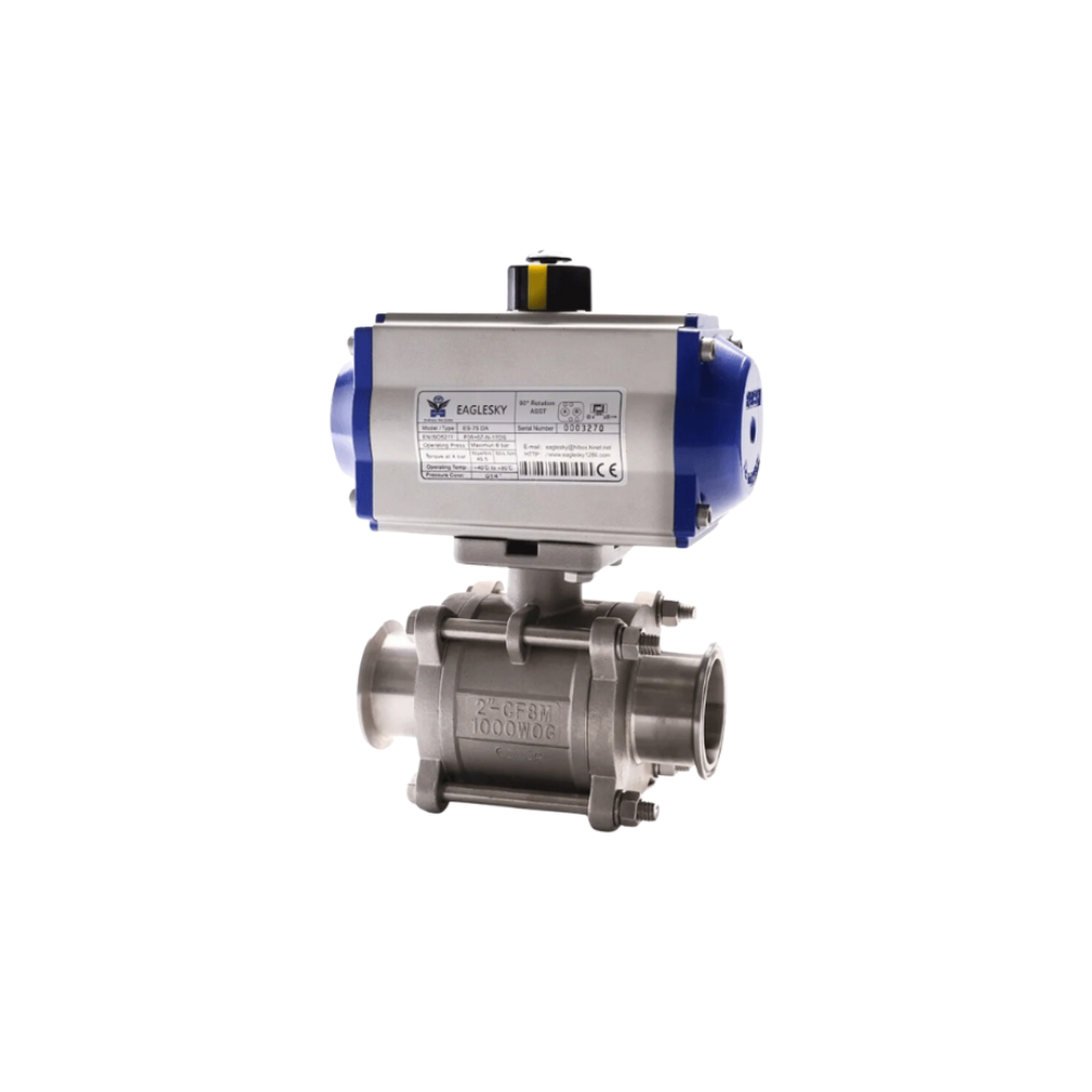 Van bi Inox 3PC nối hàn điều khiển khí nén EAGLESKY là dòng van bi được chế tạo từ inox không gỉ, cấu trúc ba mảnh (3PC) giúp dễ dàng tháo lắp, bảo trì và thay thế gioăng làm kín. Sản phẩm sử dụng bộ điều khiển khí nén dạng tác động đơn (single acting) hoặc tác động kép (double acting), phù hợp cho những hệ thống yêu cầu đóng/mở nhanh, chính xác và vận hành tự động.