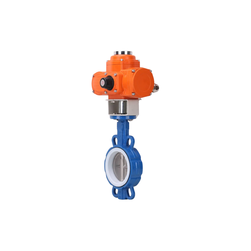 Van bướm PTFE điều khiển điện D971F-16 với lớp lót PTFE (Teflon) và bộ truyền động điện chống cháy nổ, sản phẩm đảm bảo khả năng vận hành ổn định trong môi trường có nguy cơ cháy nổ như hóa chất, dầu khí, thực phẩm, dược phẩm,…